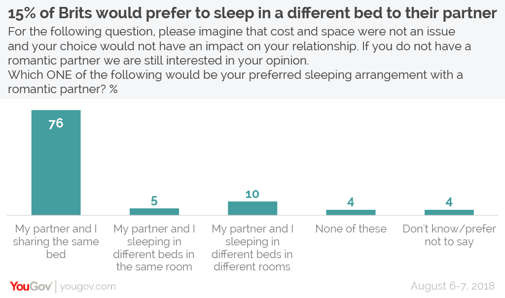 Now a new YouGov Omnibus survey reveals that as many as one in seven Britons would prefer that they and their romantic partner slept in separate beds.