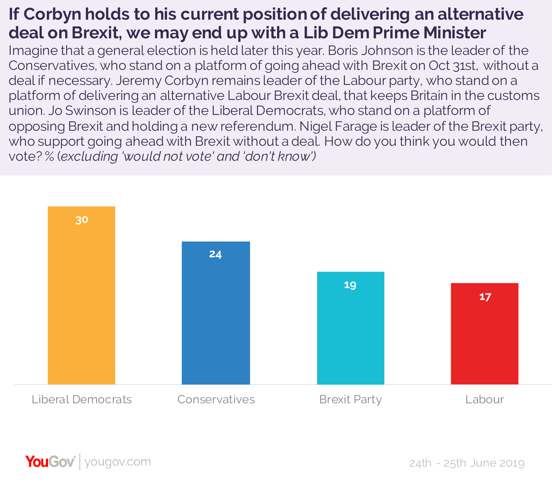 What’s more, whilst Labour retains 50% of its 2017 voters in this scenario, one in four would still move to the Lib Dems (25%).