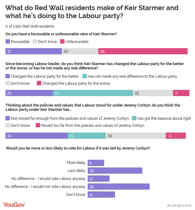 Overall, our polling shows there are some common assumptions and suggestions about Red Wall residents that are indeed true: they are in favour of Brexit, prefer Boris Johnson and his party to Keir Starmer and Labour, and do not view Jeremy Corbyn nor his leadership of Labour with much fondness.